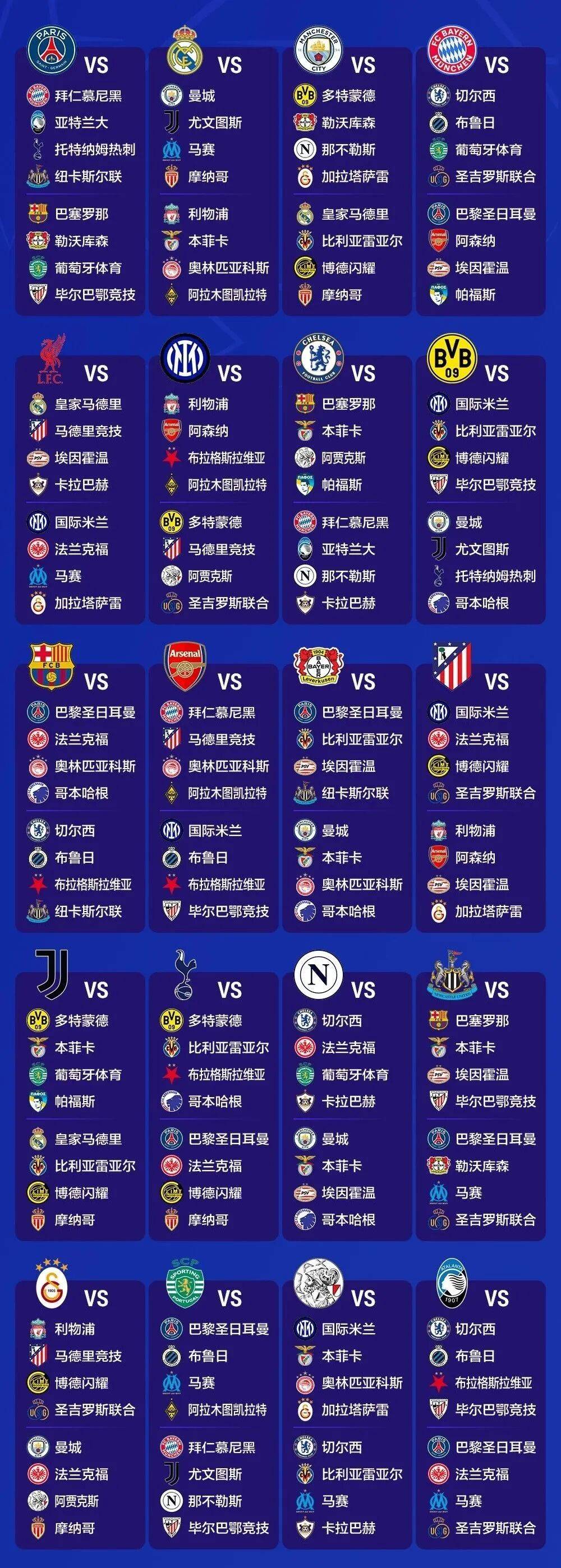 再看拜仁。拜仁的签运也不好,对手有大巴黎,阿森纳,切尔西。又是世俱杯冠亚军来伺候。另外,勒沃库森的签运也不妙,他们将面对大巴黎和曼城。